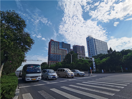 8月3日,周口市 中心城區(qū)晴空萬里,藍天白云,市民駐足在每個地方都能看到美景。