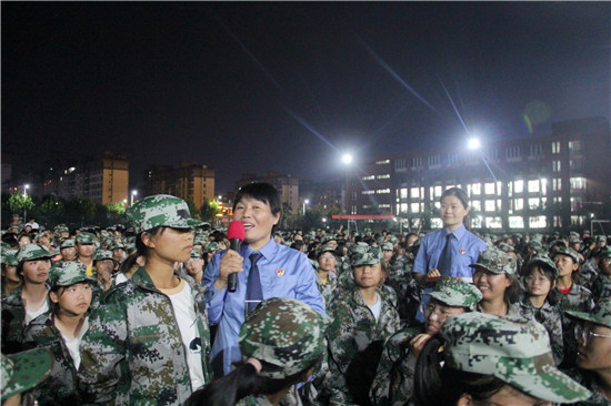 "你們正處于人生的花季,知識是養(yǎng)分,那么法律知識就好比是殺蟲劑,要學(xué)好,更要用好,要做到知法、守法、用法,在法治護航下遠(yuǎn)離校園欺凌,拒絕電信網(wǎng)絡(luò)詐騙,不義之財不可取,防范之心不可無……”。8月29日晚上7點,黃昏謝去,暮色已經(jīng)模糊起來了,伴著淺淺的晚霞,扶溝縣檢察院檢委會專職委員郁玉琴帶領(lǐng)該院“女檢察官特別護未隊”的三名女檢察官到扶溝高中為正在接受軍訓(xùn)的1600余名高一新生們上了一堂別開生面的法治課。