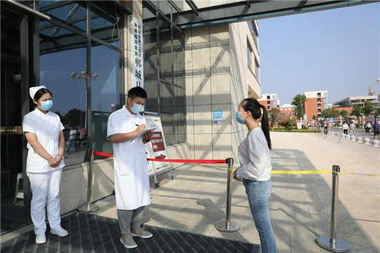 “您好,您哪兒不舒服啊?近期去過疫區(qū)嗎?”鄲城縣第二醫(yī)療健康服務(wù)集團(tuán)鄲城縣中醫(yī)院門診樓前預(yù)檢分診入口處,分診護(hù)士正仔細(xì)詢問一名就診患者?!拔矣悬c(diǎn)發(fā)燒、咳嗽,10天前從某省回來。”分診護(hù)士經(jīng)詳細(xì)詢問其流行病學(xué)史,在做好登記后,護(hù)士為患者更換醫(yī)用外科口罩,并引導(dǎo)患者到發(fā)熱門診......這是9月8日下午,在鄲城縣第二醫(yī)療健康服務(wù)集團(tuán)鄲城縣中醫(yī)院開展的秋冬季新冠肺炎疫情防控應(yīng)急演練的一幕。