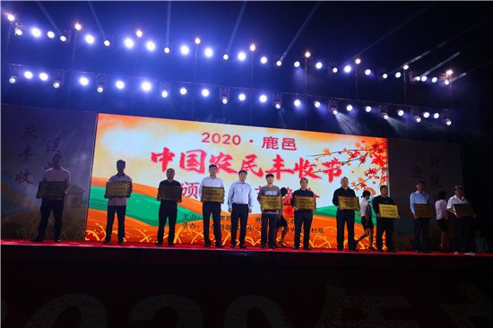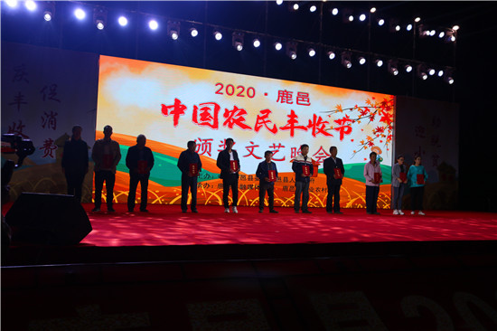 9月22日晚,由中共鹿邑縣委、鹿邑縣人民政府主辦的2020年鹿邑縣農(nóng)民豐收節(jié)文藝晚會在鹿邑縣文化中心廣場舉辦。晚會現(xiàn)場頒布了鹿邑縣“十佳家庭農(nóng)場”“十佳農(nóng)民合作社”“十佳特色農(nóng)產(chǎn)品品牌”“十佳返鄉(xiāng)創(chuàng)業(yè)脫貧致富帶頭人”“十佳脫貧致富先進(jìn)個(gè)人”五項(xiàng)獎項(xiàng),40名新型農(nóng)民(農(nóng)場、合作社)代表和10個(gè)特色農(nóng)產(chǎn)品品牌獲殊榮,他們用行動和產(chǎn)品充分展示了全縣現(xiàn)代農(nóng)業(yè)在過去一年中取得的輝煌成果。縣領(lǐng)導(dǎo)雷申、楊所超、侯自峰、王曉征、張國慶、肖西國等出席豐收節(jié)晚會,并為獲獎?wù)哳C發(fā)榮譽(yù)證書和獎牌。