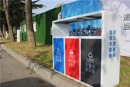 10月21日,記者在中心城區(qū)七一路東段、慶豐中路等路段看到,“藍(lán)、紅、黑”三色的新型分類垃圾桶在街邊整齊“列隊(duì)”,成為街頭一道靚麗的風(fēng)景。