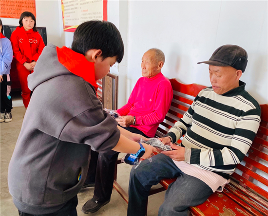 當日9時,學校各中隊隊員在校門口準時集合,在校領(lǐng)導和大隊輔導員的帶領(lǐng)下,來到鎮(zhèn)敬老院。在敬老院里,孩子們認認真真清掃落葉和垃圾,為老人們晾曬被褥、衣物,擦洗用具,陪老人們聊天,還為每位老人贈送了一雙“愛心棉手套”。老人們看著一張張青春陽光的笑臉和一雙雙忙碌不停的小手,心里充滿溫暖和感激。