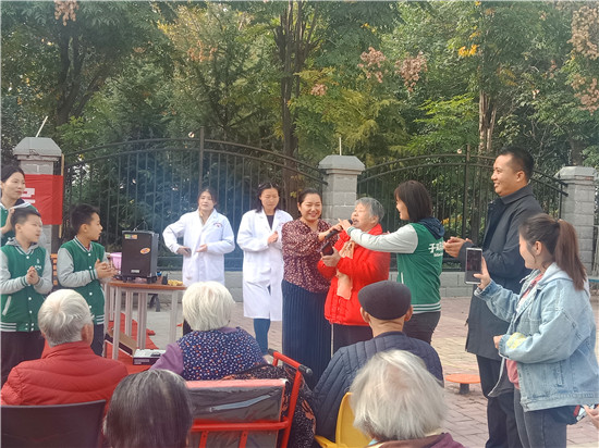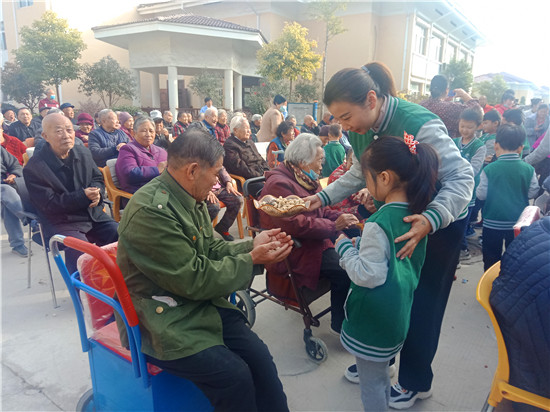 來到周口市老年護理院之后,學生們在老師的有序組織和家長們大手牽小手的幫助下,給那里的爺爺奶奶們送去了節(jié)日的祝福。祝愿爺爺奶奶身體健康,生活快樂!同時為爺爺奶奶表演了自編自導的節(jié)目。孩子們的有趣表演博得老人們開心開懷,并給以陣陣掌聲。