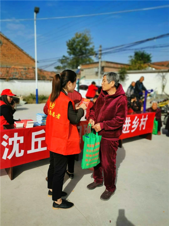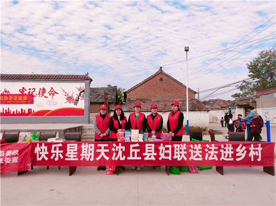 為助力鄉(xiāng)村振興,不斷提高廣大農(nóng)村留守婦女的法律意識(shí),切實(shí)解決她們生產(chǎn)生活中存在的法律難題,10月25日上午,沈丘縣婦聯(lián)借“快樂(lè)星期天公益行”主題活動(dòng)之機(jī),走進(jìn)北城辦事處蘇樓村居委,對(duì)《民法典》《婦女權(quán)益保障法》《反家庭暴力法》《未成年人保護(hù)法》等有關(guān)法律法規(guī)進(jìn)行宣傳,把法律服務(wù)送到群眾家門(mén)口。