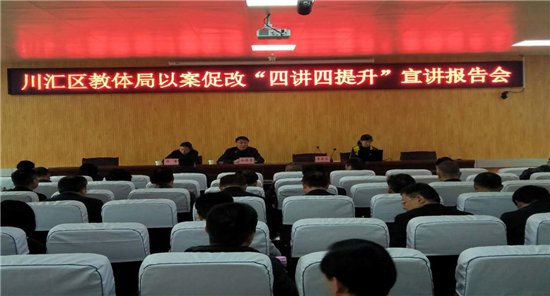 10月27日上午,川匯區(qū)教育體育局根據(jù)區(qū)委、區(qū)紀(jì)委、區(qū)紀(jì)委監(jiān)委統(tǒng)一安排,組織開(kāi)展以案促改“四講四提升”宣講活動(dòng)。區(qū)教體局黨組書(shū)記徐德志主持活動(dòng)。區(qū)委黨校教員李愛(ài)芬主講。區(qū)教體局全體工作人員、局屬二級(jí)機(jī)構(gòu)負(fù)責(zé)人、全區(qū)各中小學(xué)幼兒園校長(zhǎng)、園長(zhǎng)參加活動(dòng)。