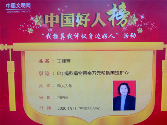 日前,中國文明網(wǎng)公布今年8月、9月中國好人評(píng)選結(jié)果:太康縣第一高級(jí)中學(xué)黨委書記、校長沈世弘從教32年不斷求創(chuàng)新,榮登8月敬業(yè)奉獻(xiàn)類“中國好人榜”;太康縣平安養(yǎng)殖專業(yè)合作社理事長王桂芳8年捐款捐物百余萬元幫助困難群眾,榮登9月“中國好人榜”。至此,太康縣中國好人上榜人數(shù)達(dá)66人,位居全國縣級(jí)市首位。