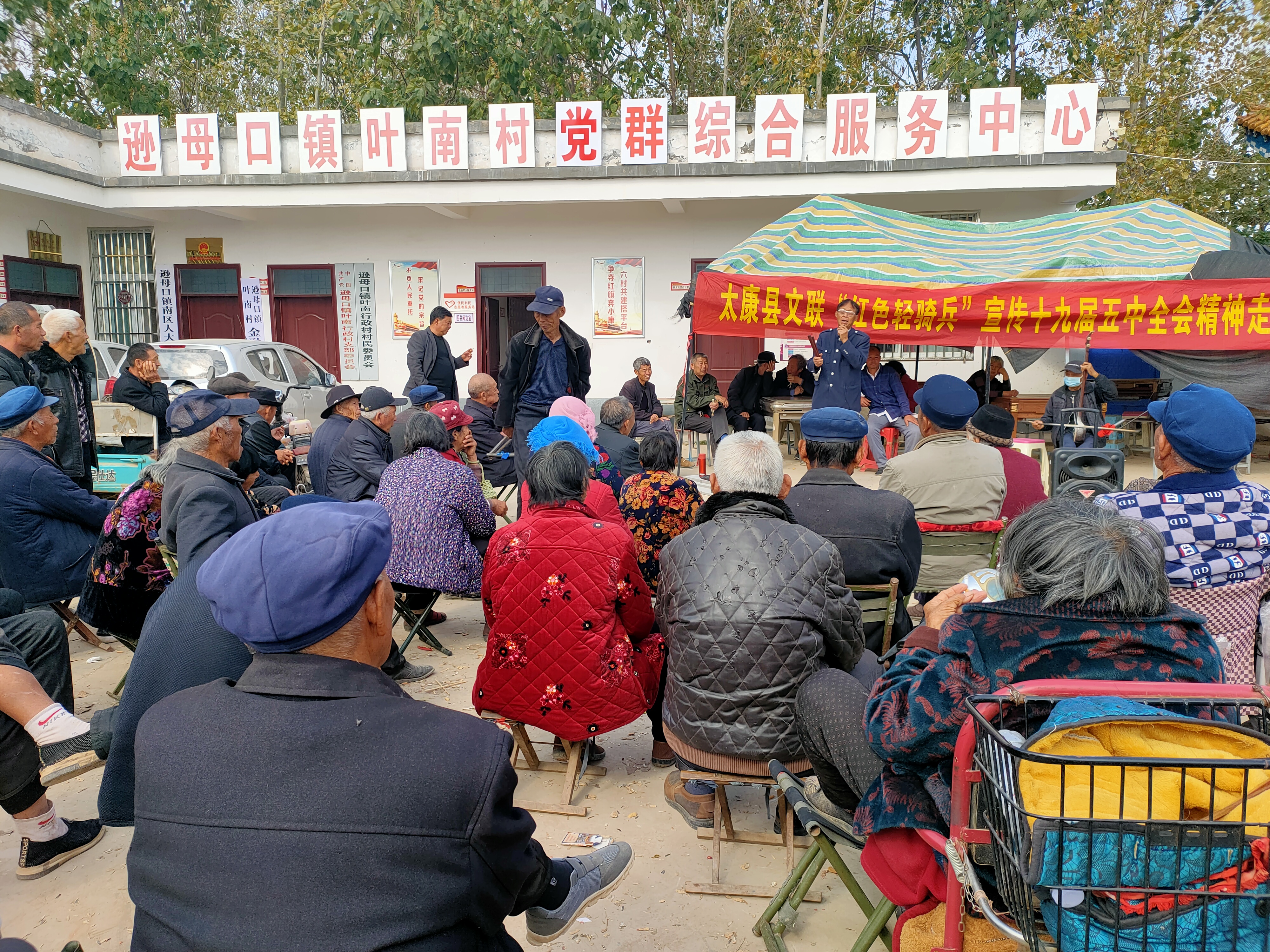 4日上午,太康縣文聯(lián)“紅色輕騎兵”首站走進(jìn)遜母口鎮(zhèn)葉南村,在葉南村黨群綜合服務(wù)中心,以老百姓喜聞樂見的說(shuō)唱藝術(shù)形式,宣傳黨的五中全會(huì)精神。身兼太康縣民協(xié)和曲協(xié)主席的老藝術(shù)家王在禮,演唱了漁鼓道情《十九屆五中全會(huì)精神夸一夸》,以說(shuō)唱形式,向老鄉(xiāng)們介紹黨的十九屆五中全會(huì)的精神;藝術(shù)家趙洪杰演唱了河南墜子《酒色財(cái)氣》,勸老鄉(xiāng)們摒棄陋習(xí),奮發(fā)向上建設(shè)新農(nóng)村;曲藝家鄭明禮演唱了河南墜子《孝雙親》,倡導(dǎo)愛老敬老好風(fēng)尚……二胡悠揚(yáng),檀板輕搖,藝術(shù)家們的演出受到老鄉(xiāng)們的歡迎。