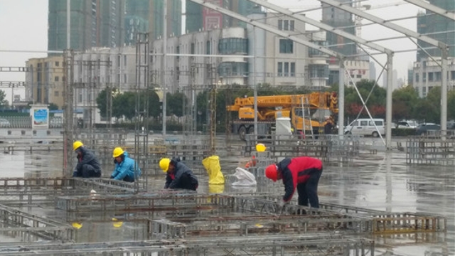 11月23日,記者在周口市體育中心看到,第一屆周商大會(huì)展位的搭建工作正在緊張進(jìn)行,目前周商產(chǎn)品展示展覽區(qū)的主體鋼架結(jié)構(gòu)已見雛形
