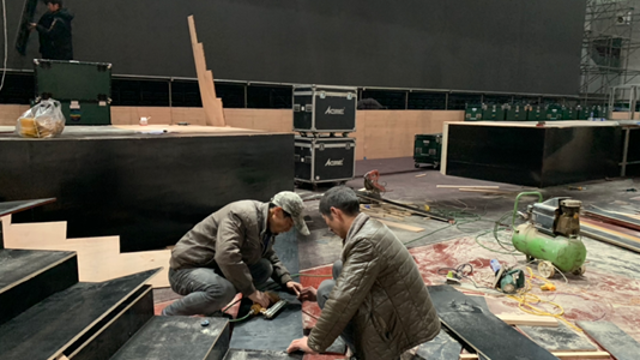 11月23日上午,記者在周口市體育中心看到,由國際名模馬艷麗領(lǐng)銜的周商大會(huì)國際時(shí)裝表演秀的舞臺(tái)正在搭建中。