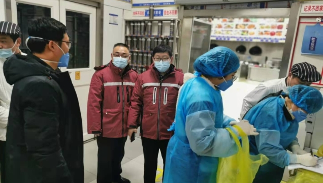 為助力第一屆周商大會(huì)圓滿成功,市衛(wèi)生健康委抽調(diào)近百名調(diào)精兵強(qiáng)將組成衛(wèi)生保障專班開展衛(wèi)勤保障工作。圖為工作人員在市委黨校迎賓館和體育賓館餐廳對后廚人員做核酸檢測及開展冷鏈?zhǔn)称废尽?/span>