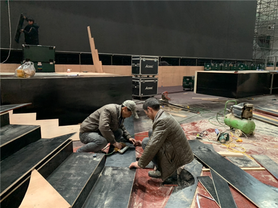 11月24日晚,記者在周口市體育館見到,由馬艷麗領銜回饋家鄉(xiāng)的周商大會國際時裝秀舞臺正在搭建中,據(jù)正在施工的工人介紹,他們每天加班加點布置舞臺,預計26日舞臺調試完成,27日開始彩排,28日晚正式開啟時裝秀。