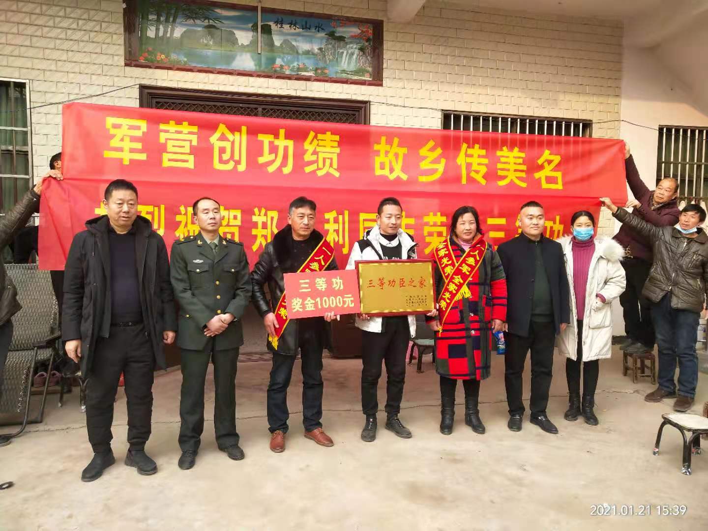 1月21日下午,太康縣高賢鄉(xiāng)保渡村現(xiàn)役軍人程勝杰家門前鑼鼓喧天,喜氣洋洋,熱鬧非凡。太康縣委常委、縣人武部部長于永前,政委郭立君,縣退役軍人事務(wù)局局長潘布道,高賢鄉(xiāng)黨委書記鄭宏等相關(guān)領(lǐng)導(dǎo)一行,為榮立二等功的程勝杰家屬送來了立功喜報、“二等功臣之家”牌匾及5000元慰問金。