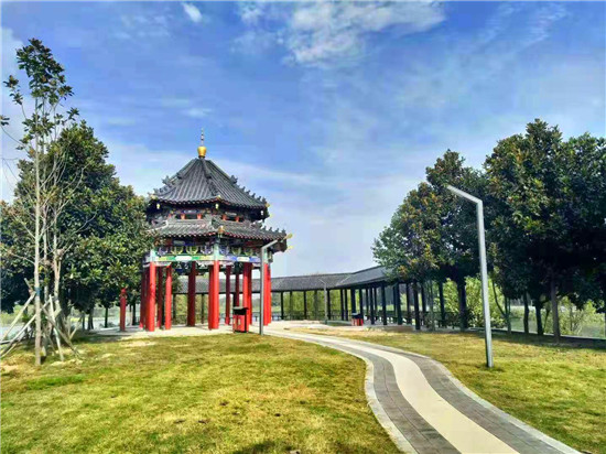 蒲葦水草,曲徑小橋,俯瞰沙河灣濕地公園全景,宛若鑲嵌在中心城區(qū)西部的一片翠玉。昔日垃圾遍地、灰坑臭水的西郊沙河灣,變成了周口秀美的“小江南”。