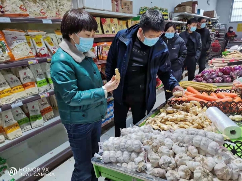 隨后到超市和農(nóng)貿(mào)市場詳細檢查了解節(jié)前食品安全和供應、市場經(jīng)營秩序、物價穩(wěn)控和消防安全等情況,確保食品質(zhì)量和安全,讓廣大群眾買得實惠、吃得放心。對檢查中發(fā)現(xiàn)的安全隱患,檢查組均要求立即整改或限期整改。