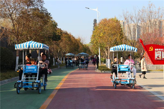 “今天真暖和?!?月19日,風(fēng)和日麗,周口國防教育園內(nèi)湖水蕩漾,四周的迎春花、梅花相繼開放,吸引了許多市民帶著孩子前往踏春賞花,接受國防教育。周口日?qǐng)?bào)·周道客戶端記者 高洪馳 攝