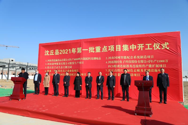 2月20日上午 ,沈丘縣舉行了2021年第一批重點(diǎn)項目集中儀式。此次集中開工項目共9個,總投資57.57億元,2021年計劃投資26.2億元。