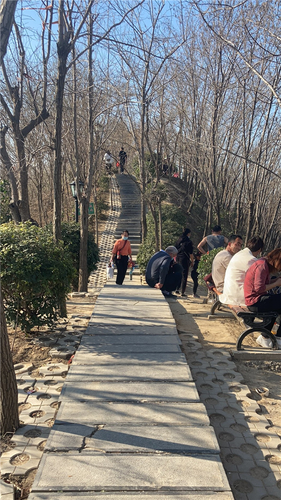 在槐香湖邊,年輕人三五結(jié)伴登上游艇,“坐船能到湖那邊的小島,島上也有槐樹,拍照肯定特別漂亮。”返鄉(xiāng)大學(xué)生把七星島上的景色留在了自己的相機(jī)里。七星島與槐香湖相連的橋上,人潮擁擠,有的人席地而坐,觀賞著橋上的風(fēng)景。當(dāng)問道在外市工作的王先生游玩感受時(shí),他回答到:“年后上班沒時(shí)間鍛煉身體,今天我把全家人帶來登山,呼吸一下新鮮空氣?!雹?