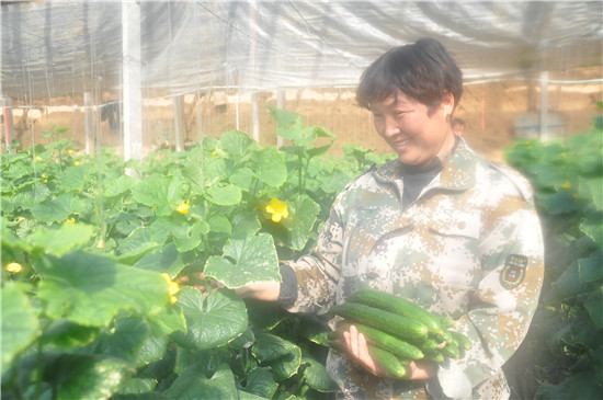 春節(jié)過(guò)后,我市新鮮蔬菜供需平穩(wěn),菜價(jià)未出現(xiàn)大幅度波動(dòng),其中本地蔬菜起到抑制菜價(jià)的作用。圖為扶溝菜農(nóng)正在自家大棚里采摘黃瓜。②8記者 金月全 通訊員 陳奎 攝