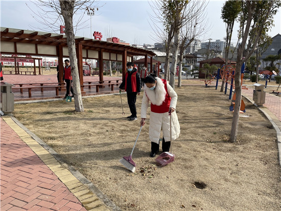 活動中,辦事處志愿者拿著垃圾袋、掃帚等工具按照區(qū)域分工積極行動,他們發(fā)揚(yáng)不怕苦、不怕臟的精神,對游園內(nèi)的落葉、雜草、垃圾等進(jìn)行全面清理打掃,經(jīng)過大家辛苦勞動,復(fù)興街游園衛(wèi)生煥然一新,得到了居民的贊揚(yáng)。