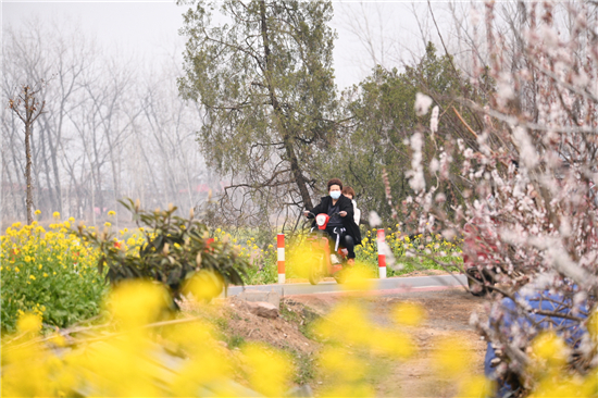 近日,盡管天氣乍暖還寒,沙潁河周口上游段油菜花已競(jìng)相開(kāi)放。蜿蜒碧水兩畔,金黃色的油菜花燦如錦緞。輪渡行進(jìn)在碧水和花錦之間,如走進(jìn)畫(huà)廊。②8