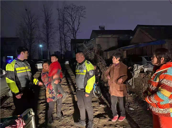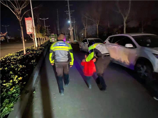 3月12日晚,鄲城縣交警大隊鐵騎中隊副中隊長張鑫值班過程中發(fā)現一位迷路小孩,張新等人想方設法把孩子護送回家。