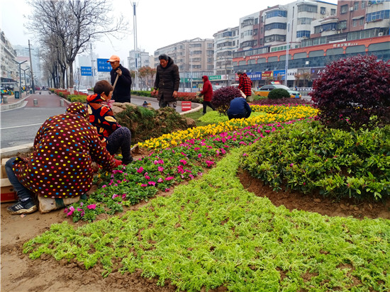 一場春雨過后,處處洋溢著勃勃生機(jī)。3月20日上午,記者在周口中心城區(qū)大慶路與交通大道交叉口處的紅綠燈旁看到,園藝工作人員正在忙碌著補(bǔ)種花木,黃色、綠色、紅色的花兒平鋪在一起組合成一道亮麗的風(fēng)景,扮靚了街頭,令人賞心悅目。③2