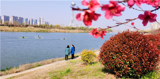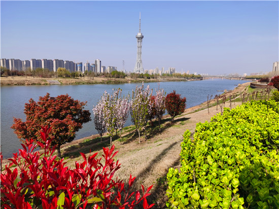 近日,在春花和藍(lán)天碧水映襯下,沙潁河兩岸桃花、海棠、石楠、櫻桃花競相綻放,沙潁河兩岸美如畫。
