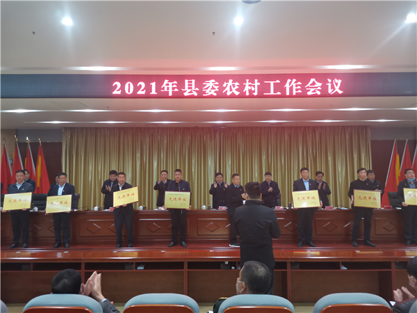 郭俊濤就貫徹落實會議精神及下一步農(nóng)村工作進行具體安排部署??h委副書記許四軍宣讀了縣委、縣政府關(guān)于表揚2020年度農(nóng)業(yè)農(nóng)村工作先進單位、先進個人的通報。會議還對受表彰的先進單位代表進行了頒獎。