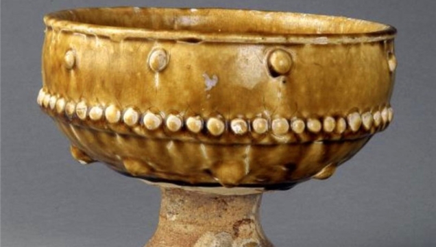在河南省周口市博物館就陳列著一件保存完整,制作工藝精湛,造型精美的唐代壽州窯黃釉乳釘紋豆,它給人以美的享受,是同類器物中的精品,為國家一級(jí)珍貴文物。