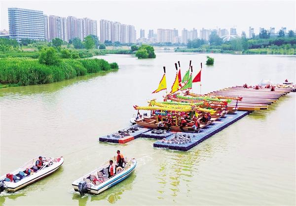 5月25日,整修完畢的龍舟在拖船的牽引下,沿沙潁河逆流而上。這些龍舟最終將駐泊在沙潁河中心城區(qū)段關(guān)帝廟前水域,靜候大賽來臨。據(jù)了解,中州大道橋以東、關(guān)帝廟前水域曾是周口最早的端午龍舟賽賽場,2025“國緣杯”周口市第十屆中華龍舟賽將于5月29日在此處鳴鑼開賽。