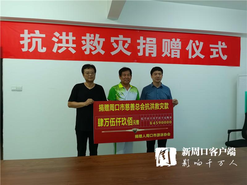 7月31日上午,市游泳協(xié)會通過市慈善總會定向捐贈川匯區(qū)防汛搶險款4.59萬元。
