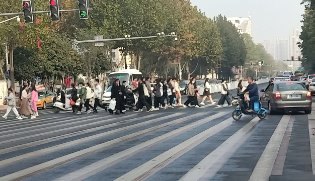 近日,在周口城鄉(xiāng)一體化示范區(qū)人和路和平安路交匯口,一群身穿印有“周口交通技師學(xué)院”字樣紅色馬甲的忙碌身影引來(lái)眾多路人注目。