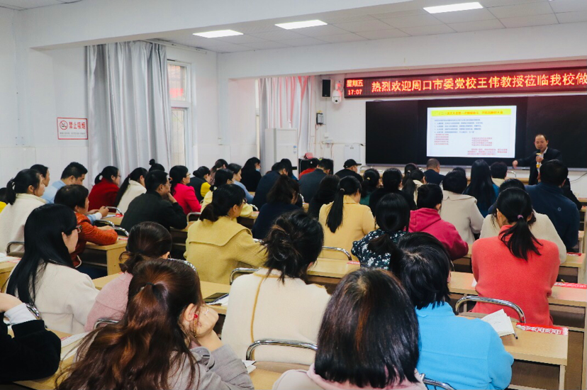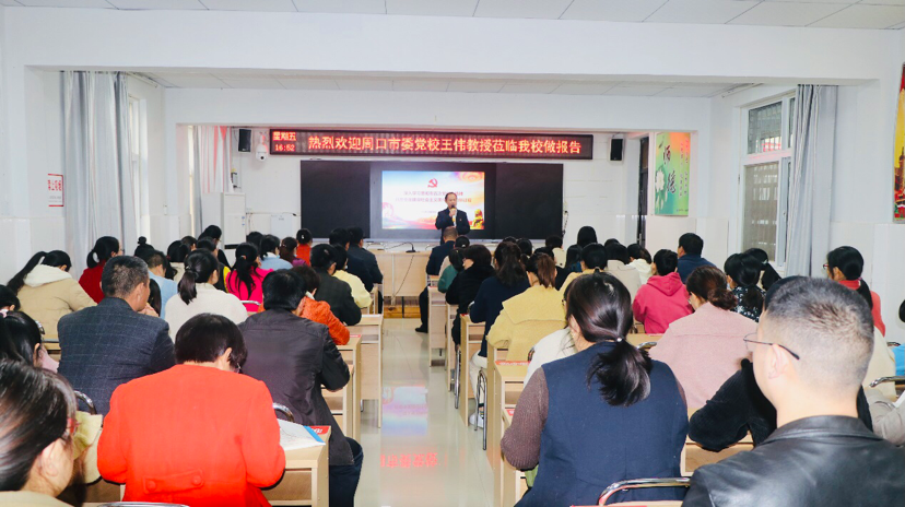 宣講會上,市委黨校宣講團講師王偉以“深入學習貫徹市五次黨代會精神、開啟全面建設社會主義現(xiàn)代化周口新征程”為主題,從充分認識市五次黨代會的重大意義、準確把握市五次黨代會的精神要義、全面落實市五次黨代會的目標任務三方面,詳盡解讀了市五次黨代會主旨報告的精神實質(zhì)和豐富內(nèi)涵。整場報告脈絡清晰、論述深刻、內(nèi)容豐富,既有深入淺出的理論闡述,又有結(jié)合我市發(fā)展的實例分析,更有教育實踐層面的對策思考,為該校教職工深入、完整、系統(tǒng)地領(lǐng)會市五次黨代會精神,有力推進貫徹落實黨代會精神提供了一把“金鑰匙”。