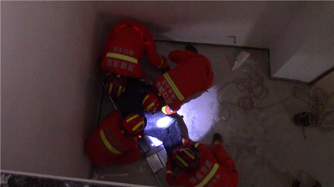 了解情況后,4名消防員立即深入地下室,利用擔架,先將老人保持原有姿勢轉移到擔架上,再用救援繩將老人綁在擔架上加以固定。最后,救援人員將擔架四角分別綁上救援繩,下方人員托扶擔架,上方人員將擔架平穩(wěn)的向上拉。經過近30分鐘緊張救援,成功將被困老人救出,并交由醫(yī)護人員進行下一步處理。②10