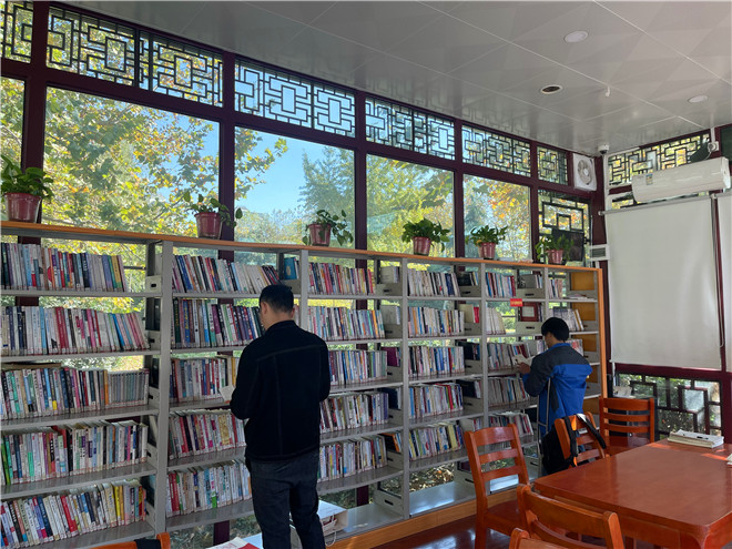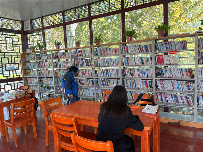 11月8日,記者在位于周口經(jīng)濟開發(fā)區(qū)人民廣場的城市書房看到,書架上的書籍擺放有序,書房環(huán)境干凈整潔,市民正在文明閱讀。