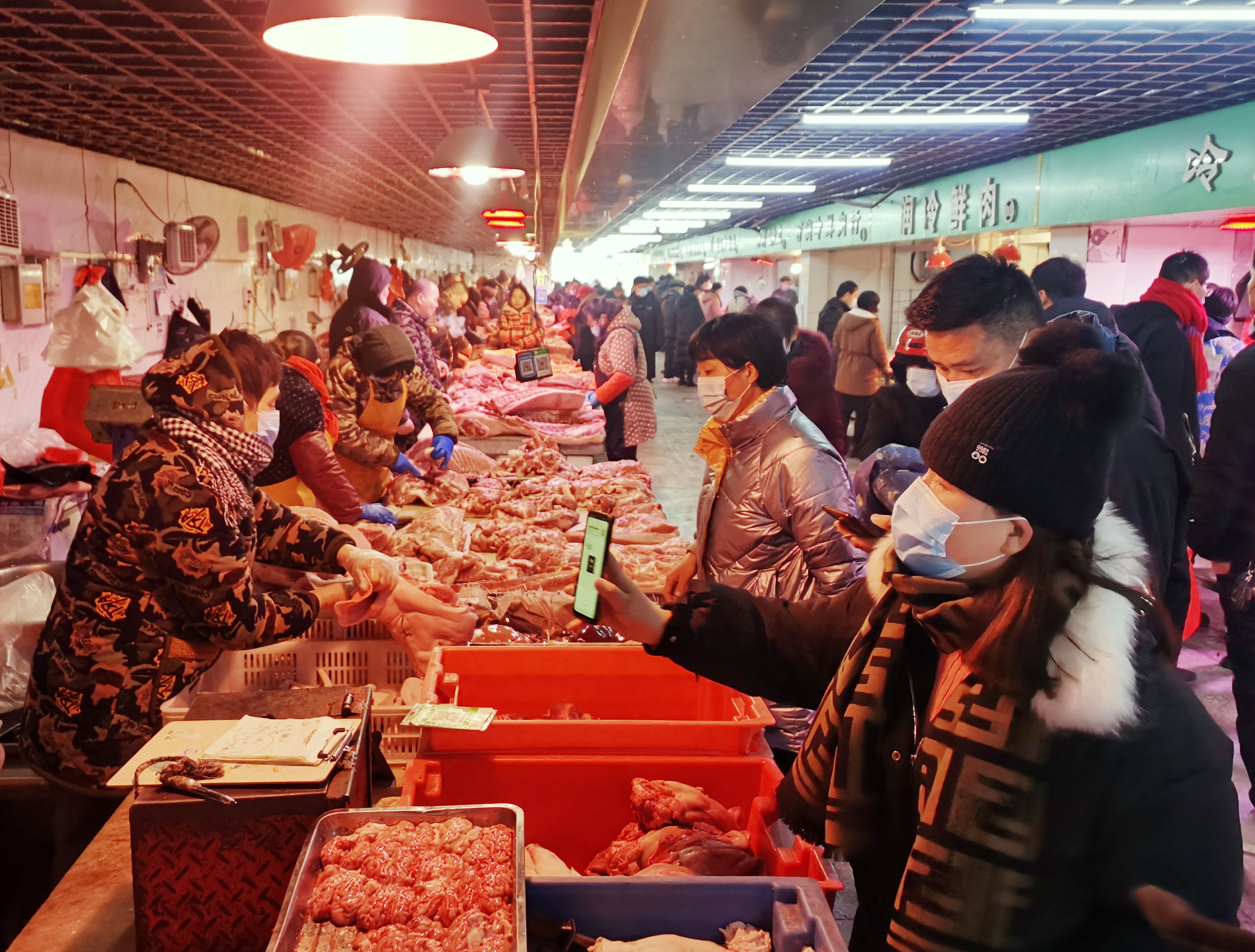 1月27日,黃淮大市場(chǎng)里人來(lái)人往,前來(lái)選購(gòu)的市民絡(luò)繹不絕。 春節(jié)臨近,市民置辦年貨的熱情越來(lái)越高,黃淮大市場(chǎng)內(nèi)年味十足,蔬菜、水產(chǎn)、熟食、副食品等分區(qū)鮮明,各種商品供應(yīng)充足,呈現(xiàn)購(gòu)銷(xiāo)兩旺態(tài)勢(shì)。②11