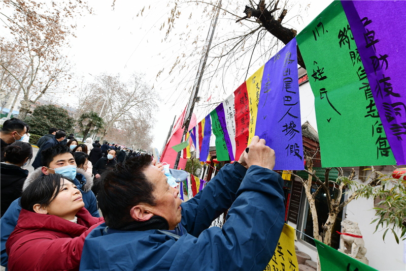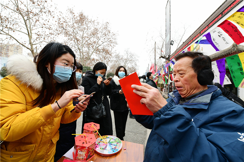 2月15日上午9時(shí),由周口市文化廣電和旅游局、周口市文物局主辦,市博物館、市文物保護(hù)中心、市民協(xié)、華威民俗文化博物苑承辦,市民協(xié)燈謎學(xué)專委會(huì)、川匯區(qū)民協(xié)、川匯區(qū)燈謎學(xué)會(huì)協(xié)辦的元宵節(jié)燈謎競(jìng)猜活動(dòng),主會(huì)場(chǎng)在市文化藝術(shù)中心廣場(chǎng),分會(huì)場(chǎng)在華威民俗文化博物苑,吸引謎語(yǔ)愛好者踴躍競(jìng)猜,甚為熱鬧。在華威民俗文化博物苑分會(huì)場(chǎng)的謎語(yǔ)現(xiàn)場(chǎng),舉辦方以傳統(tǒng)形式進(jìn)行,備了300條謎語(yǔ),用毛筆將謎語(yǔ)寫在紅藍(lán)綠白紙張上,懸掛門前,讓市民競(jìng)猜,氣氛熱烈濃厚。舉辦方還特意準(zhǔn)備了跳繩、網(wǎng)球拍、乒乓球拍、飛鏢盤、跳棋等600份獎(jiǎng)品,獎(jiǎng)給猜中謎底的市民。①2