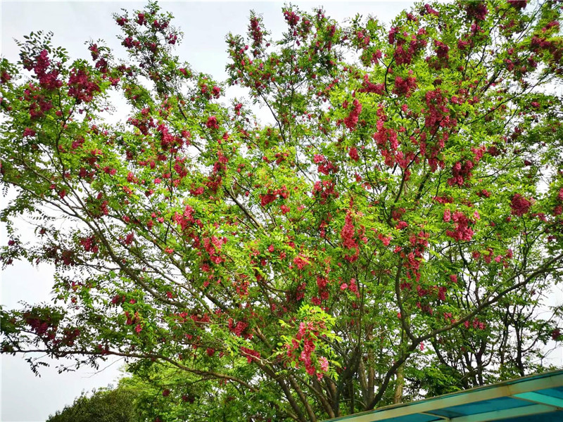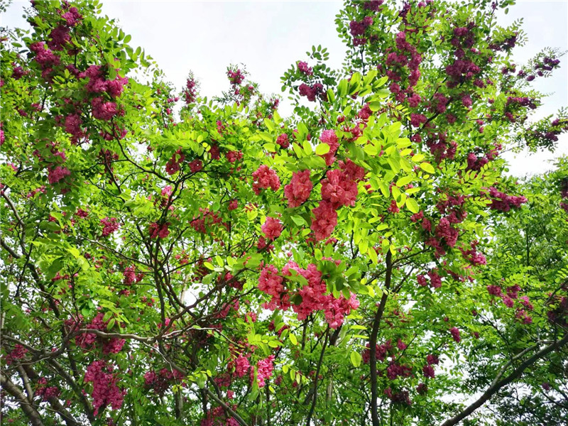 “槐林五月漾瓊花,郁郁芬芳醉萬家?!毖巯?,在周口濱河公園,紅色的槐花怒放,芳香四溢,惹人心醉。陽光下,一串串、一簇簇、一樹樹槐花隨風(fēng)搖曳,美不勝收。周口日報·周道客戶端記者 普淑娟 攝