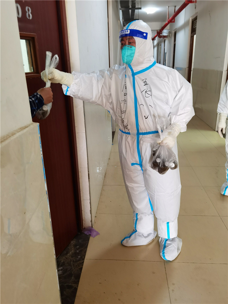 人手緊張的時(shí)候,王飛也會(huì)進(jìn)入隔離點(diǎn)和大家并肩作戰(zhàn)。他每天不分晝夜地工作,由于工作量大,每次完成工作都是晚上十一點(diǎn)多,甚至更晚。隊(duì)員有需求,王飛隨叫隨到,千方百計(jì)幫助解決問(wèn)題,幾乎每天都在超負(fù)荷工作。