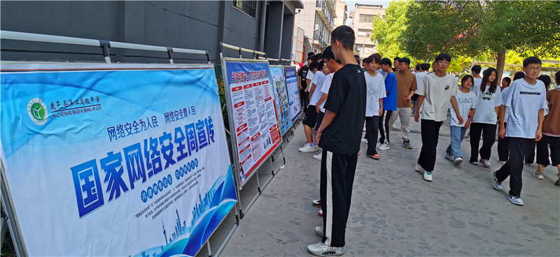 9月6日是國(guó)家網(wǎng)絡(luò)宣傳周校園日,鹿邑縣第二高級(jí)中學(xué)校園里整齊地?cái)[放出數(shù)塊制作精美、內(nèi)容充實(shí)的網(wǎng)絡(luò)安全宣傳展板,引起師生們駐足觀看。