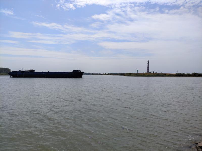 岸上已無往昔的喧囂,水上卻更加繁忙,曾經(jīng)在沫河口畔穿梭的一兩丈長(zhǎng)的小木船、水泥船如今都換成了千噸級(jí)貨輪。沫河口上游潁上船閘的數(shù)據(jù)顯示,每天有50艘左右的千噸級(jí)船舶經(jīng)過沫河口往返于沙潁河、淮河之間,展現(xiàn)著周口的航運(yùn)復(fù)興。采訪組一行在沫河口逗留一個(gè)多小時(shí)的時(shí)間段,就有6艘貨輪從淮河逆流而上,上行駛?cè)肷碀}河,一艘拖船拖著7艘貨輪,浩浩蕩蕩地從沙潁河駛?cè)牖春?,順流而下……?