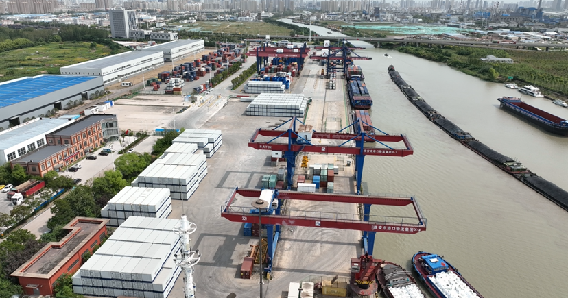 繁忙的淮安港。在自動化集裝箱碼頭,貨船頻繁進出,集裝箱不斷被起重機吊起、裝運,繁榮忙碌而又秩序井然。據了解,目前淮安全市碼頭岸線28公里,港區(qū)7個、碼頭116座、泊位389個,其中千噸以上泊位92個,年設計吞吐能力1.1億噸,其中集裝箱碼頭吞吐能力50萬標箱。2021年,淮安被交通運輸部確定為“全國內河主要港口”。運行內河集裝箱航線14條,上游覆蓋河南周口、山東、湖北、安徽等地,下游通達銜接江蘇沿江沿海、上海等地。2021年完成集裝箱吞吐量31.07萬標箱。