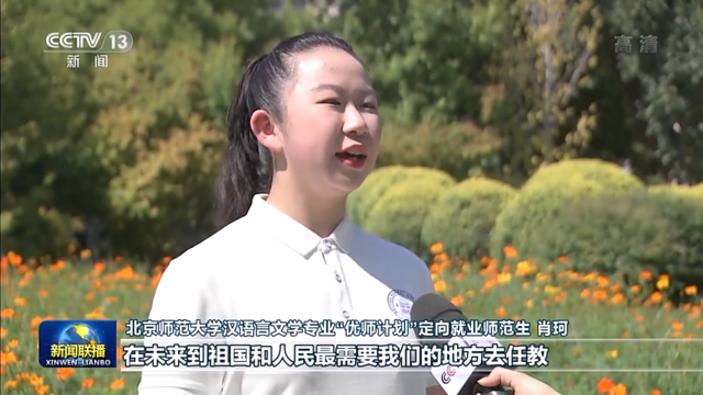 北京師范大學(xué)漢語言文學(xué)專業(yè)“優(yōu)師計劃”定向就業(yè)師范生 肖珂:總書記勉勵我們增長傳道授業(yè)解惑本領(lǐng),在未來到祖國和人民最需要我們的地方去任教。我定不負囑托,努力學(xué)習,在畢業(yè)后回到我的家鄉(xiāng)。
