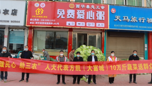“中國好人”、周口市人大代表方凱幫助黃橋鄉(xiāng)菜農解決蔬菜滯銷難題,并通過西華縣紅十字會向這些單位捐贈10萬斤蔬菜,讓滯銷菜變“暖心菜”。方凱的這一舉動,受到群眾的稱贊。