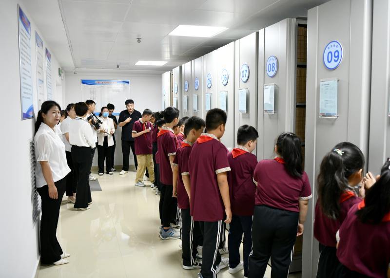 啟動儀式結(jié)束后,學生們參觀了區(qū)檔案館“6·9國際檔案日”宣傳展板、照片展廳、查閱室、整理室、庫房等辦公區(qū)域。