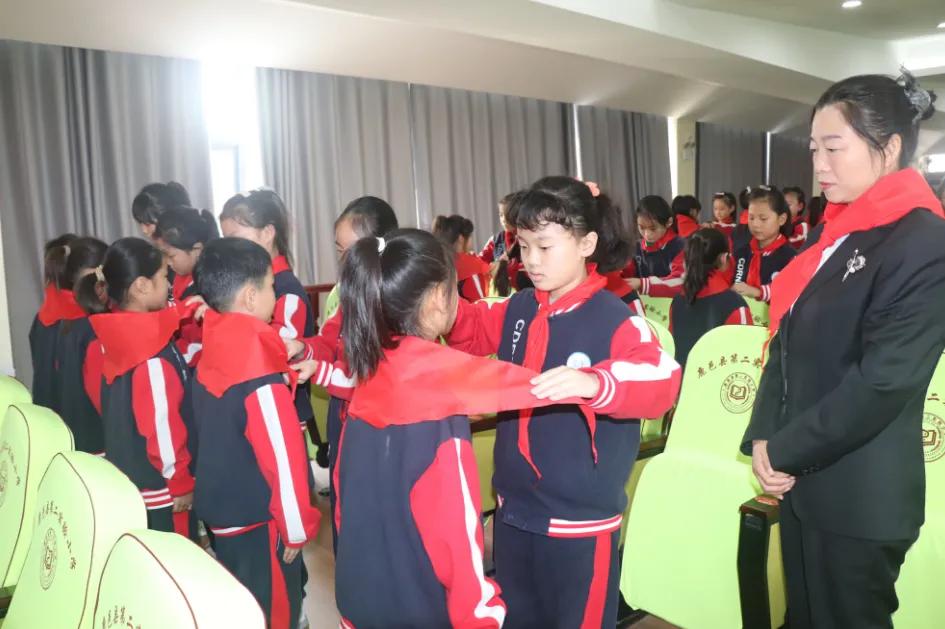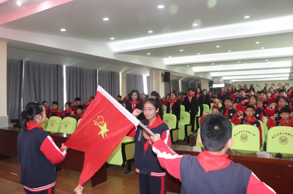 儀式上,該校副校長肖東旭宣布新隊員名單,230名同學加入中國少年先鋒隊,成為一名光榮的少先隊員。緊接著,四年級優(yōu)秀隊員代表莊重地為新隊員代表系上鮮艷的紅領巾。在大隊長的帶領下,全體隊員在隊旗下莊嚴宣誓。少先大隊委員熱烈歡迎新隊員加入。