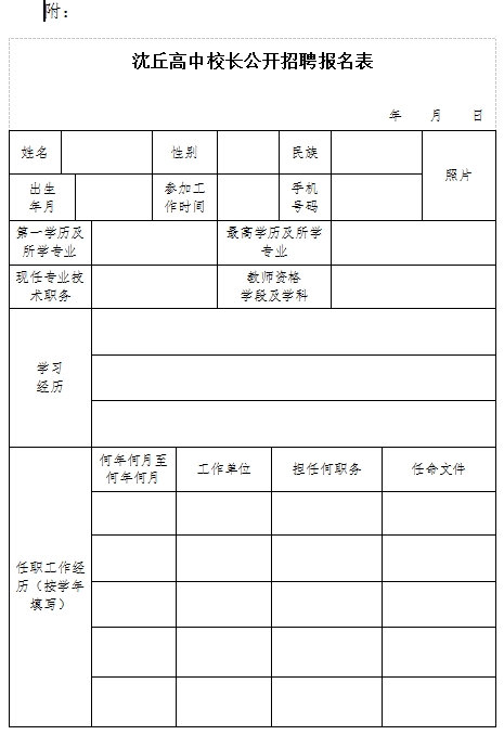 為拓寬選人用人渠道,倡導(dǎo)教育家辦學(xué)治校,根據(jù)國家相關(guān)政策規(guī)定,經(jīng)沈丘縣委、縣政府研究同意,擬面向全國公開選聘河南沈丘高中校長1名?,F(xiàn)公告如下: