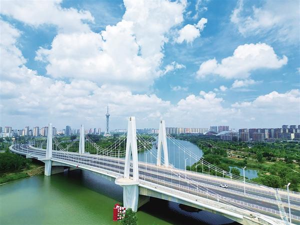 7月25日,藍(lán)天白云映襯下,周口市七一路跨沙潁河大橋以“揚帆出海”的獨特造型,生動展現(xiàn)了這座中原港城的雄心。作為河南“豫貨出?!钡臉蝾^堡,周口正肩負(fù)起港口型國家物流樞紐承載城市的重任,推動“經(jīng)濟(jì)通道”邁向“通道經(jīng)濟(jì)”,實現(xiàn)高質(zhì)量發(fā)展。