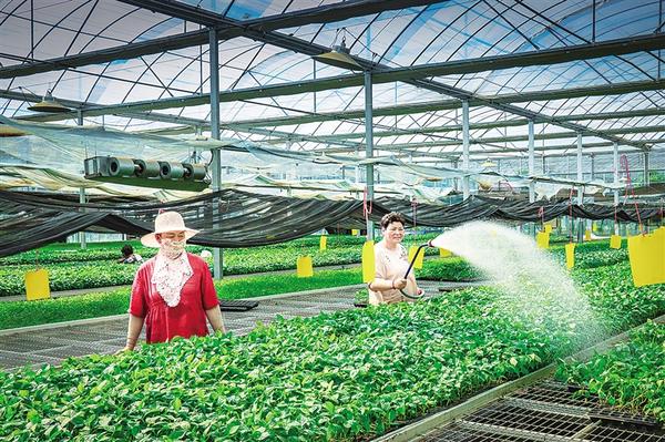 連日來,河南農業(yè)大學扶溝蔬菜研究院的工作人員多次為蔬菜種苗噴水降溫。為降低高溫對蔬菜種苗造成的不利影響,該院采取多種措施為大棚降溫,保證蔬菜種苗健康成長。谷志方 攝