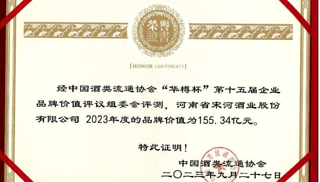 [鹿邑]宋河酒業(yè):2023年度品牌價(jià)值為155.34億元